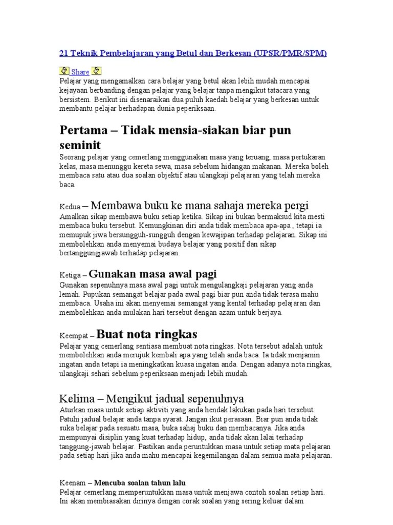 Pastikan waktu mengulang kaji lebih daripada 3 jam sehari; Tidak semua para pelajar berkemampuan untuk membuat jadual sendiri dan .